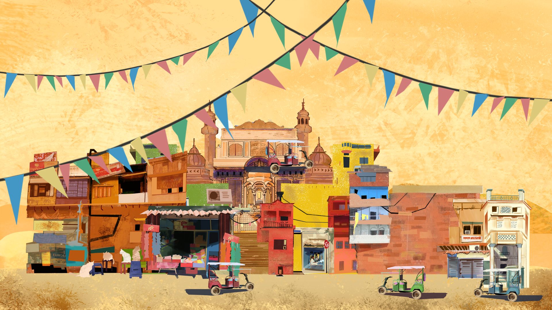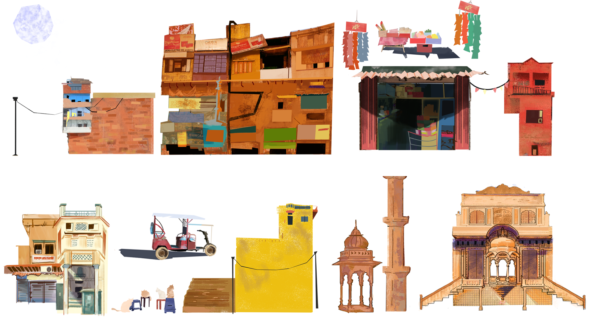 Valdrada est une adaptation visuelle du texte d’Italo Calvino, réinterprétée dans un univers architectural indien en 2.5D parallaxe, réalisée sur After Effects et Photoshop